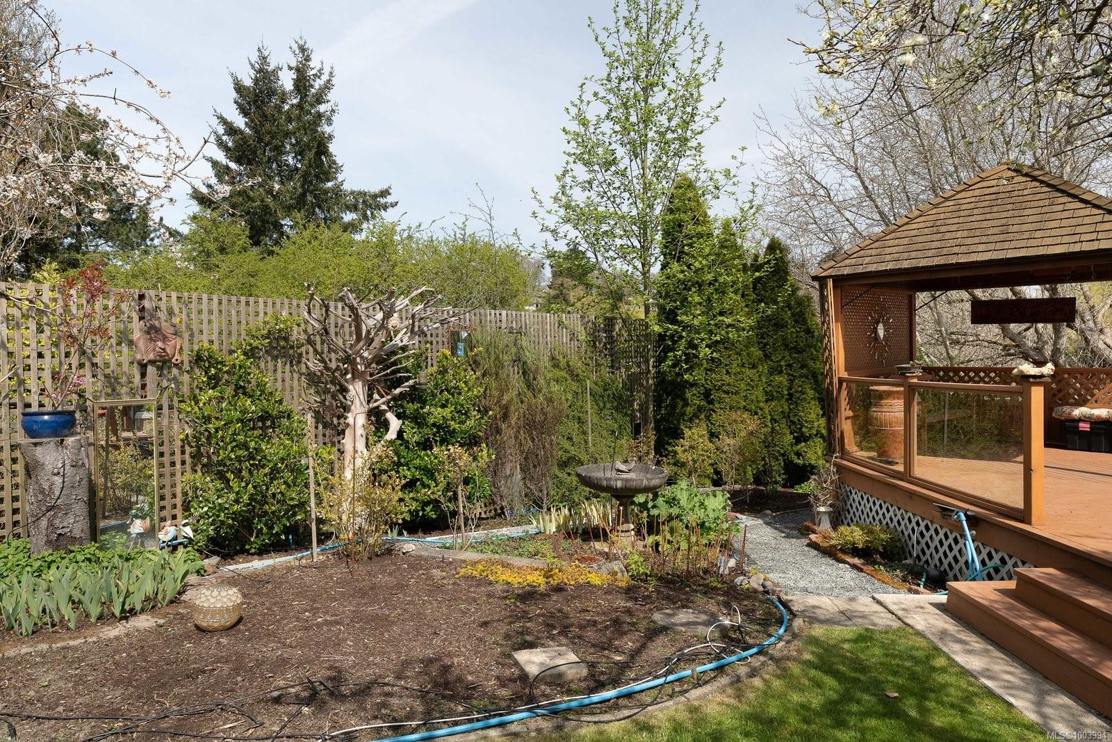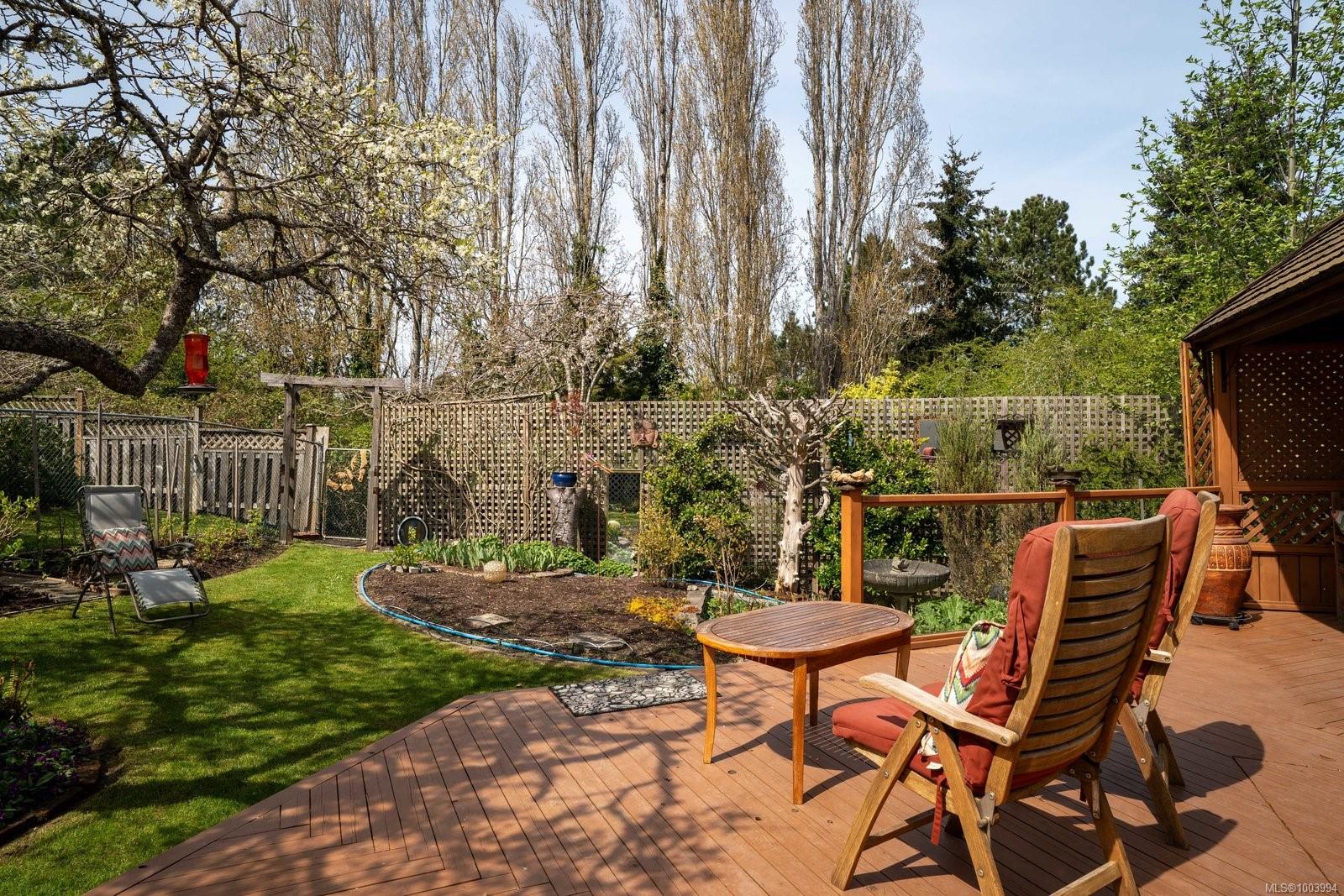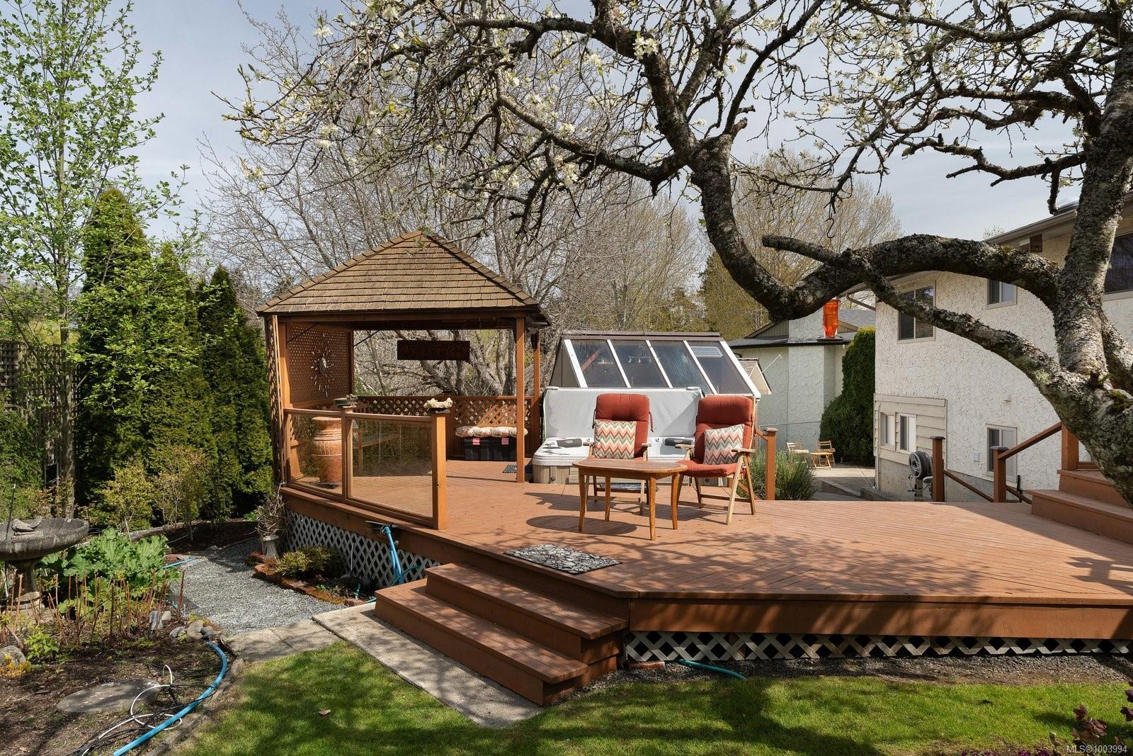 Tucked at the end of a quiet cul-de-sac, where neighbours are a gentle blend of families, couples, and long-time residents, this welcoming 4-bedroom, 3-bath home is more than a place to live — it’s a space to breathe. The heartbeat of the home lies outdoors, where a sun-drenched 550+ sq ft deck invites lazy mornings and quiet evenings under the gazebo or stars. A hot tub waits nearby, framed by gardens that have been lovingly shaped into a true sanctuary: vegetable plots ready for spring, a greenhouse and fruit already rooted in abundance — plums, berries, figs and more. The heritage Black Hawthorn stands like a watchful elder, while perennials and shrubs bloom with effortless rhythm, supported by a full irrigation system. Inside, natural light filters through solar tubes, dancing across engineered Brazilian Cherry floors. The updated kitchen offers glimpses of nesting swallows, an annual tradition. Upstairs, the wood-burning fireplace draws people close; downstairs, its electric counterpart brings ease and comfort. A large workshop or second garage with power and electric door, a full garage plus extra parking and an in-law suite with a private entrance — ideal for guests, family, or future flexibility. New hot water tank (2024), induction stove and fridge (2024), and a new main water line installed in 2021. The home is powered by a 200 Amp underground electrical service and warmed by connection — to nature, to community, to something slower and more grounded. Beyond the garden gate, the world opens up with private backyard gate access to the Lochside Trail. Whether you’re walking to the Swan Lake sanctuary minutes away, catching a nearby bus or heading toward the shops of Saanich Centre and Uptown Mall, everything feels within reach, yet comfortably removed. This is more than just a home—it's a lifestyle. A peaceful sanctuary with all the comforts and conveniences of city living, just steps from nature.