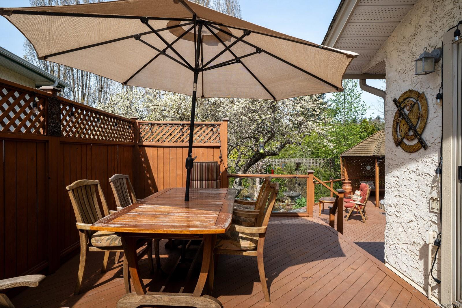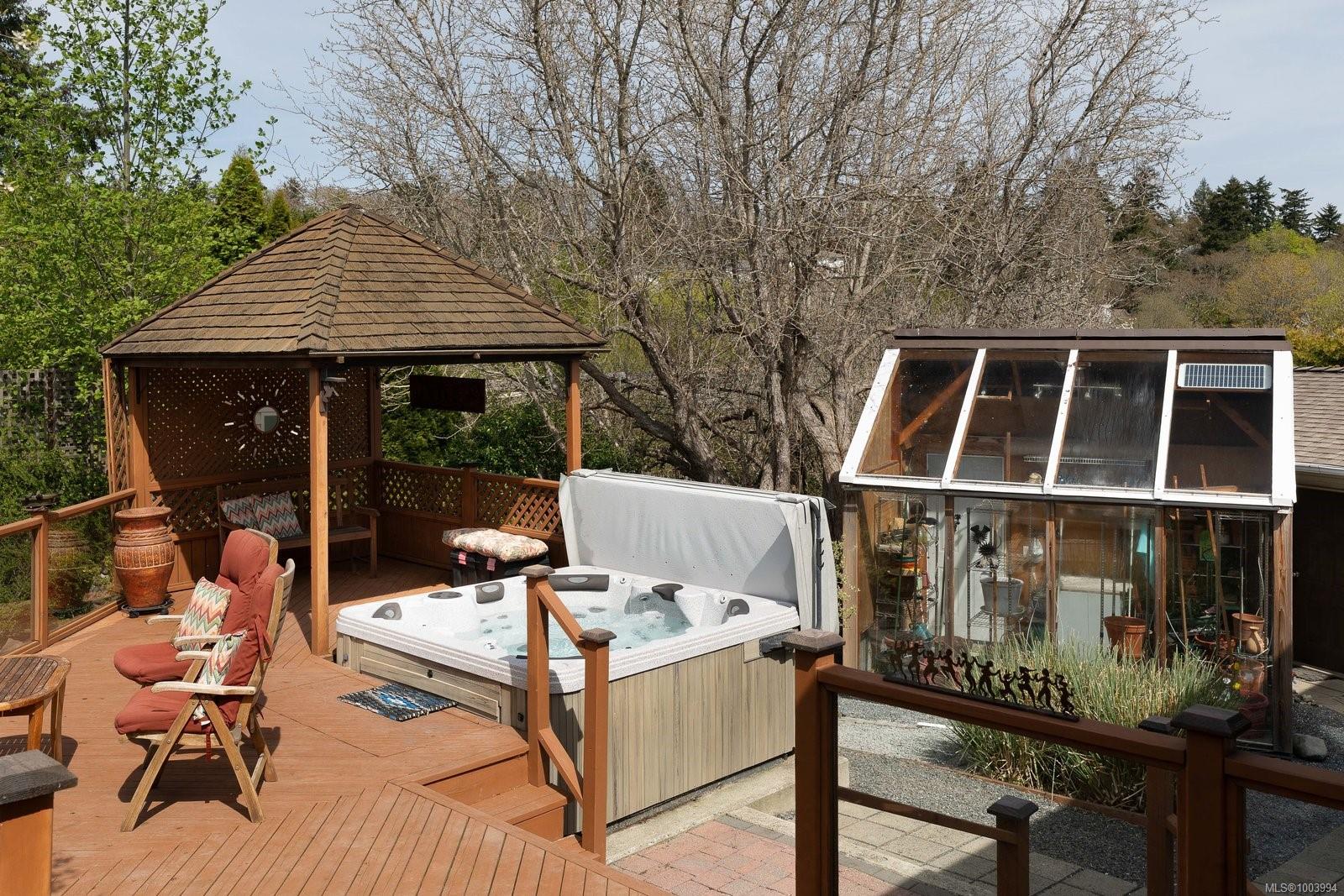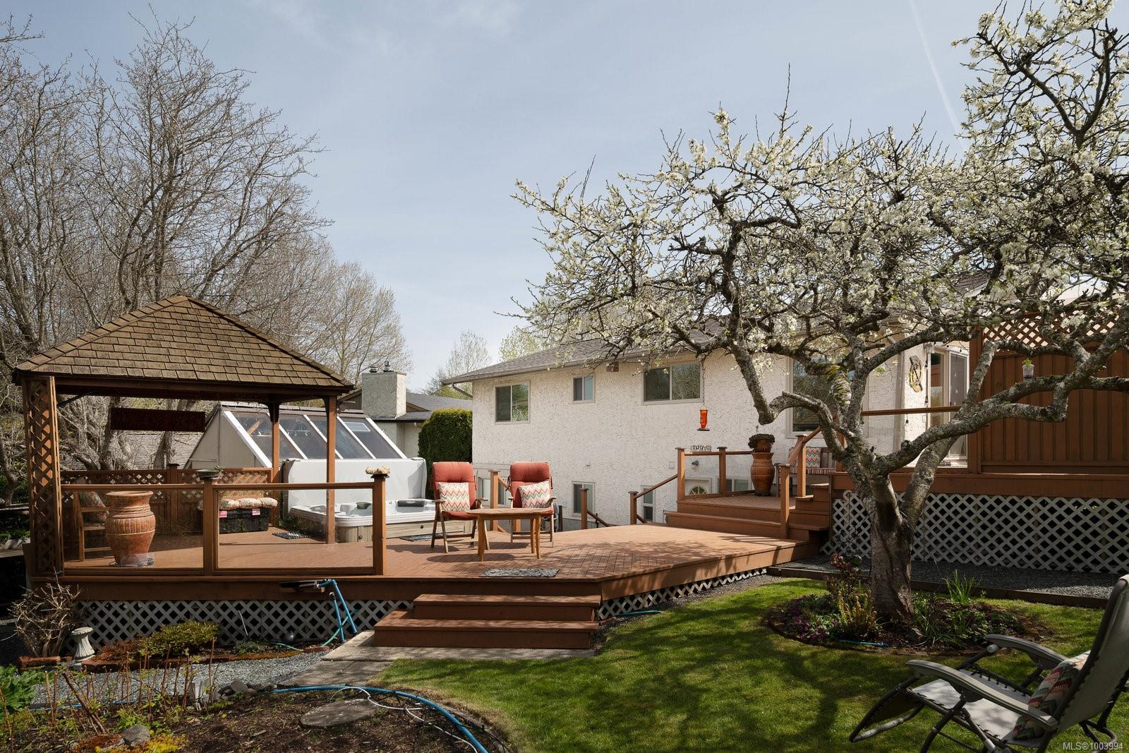 Tucked at the end of a quiet cul-de-sac, where neighbours are a gentle blend of families, couples, and long-time residents, this welcoming 4-bedroom, 3-bath home is more than a place to live — it’s a space to breathe. The heartbeat of the home lies outdoors, where a sun-drenched 550+ sq ft deck invites lazy mornings and quiet evenings under the gazebo or stars. A hot tub waits nearby, framed by gardens that have been lovingly shaped into a true sanctuary: vegetable plots ready for spring, a greenhouse and fruit already rooted in abundance — plums, berries, figs and more. The heritage Black Hawthorn stands like a watchful elder, while perennials and shrubs bloom with effortless rhythm, supported by a full irrigation system. Inside, natural light filters through solar tubes, dancing across engineered Brazilian Cherry floors. The updated kitchen offers glimpses of nesting swallows, an annual tradition. Upstairs, the wood-burning fireplace draws people close; downstairs, its electric counterpart brings ease and comfort. A large workshop or second garage with power and electric door, a full garage plus extra parking and an in-law suite with a private entrance — ideal for guests, family, or future flexibility. New hot water tank (2024), induction stove and fridge (2024), and a new main water line installed in 2021. The home is powered by a 200 Amp underground electrical service and warmed by connection — to nature, to community, to something slower and more grounded. Beyond the garden gate, the world opens up with private backyard gate access to the Lochside Trail. Whether you’re walking to the Swan Lake sanctuary minutes away, catching a nearby bus or heading toward the shops of Saanich Centre and Uptown Mall, everything feels within reach, yet comfortably removed. This is more than just a home—it's a lifestyle. A peaceful sanctuary with all the comforts and conveniences of city living, just steps from nature.